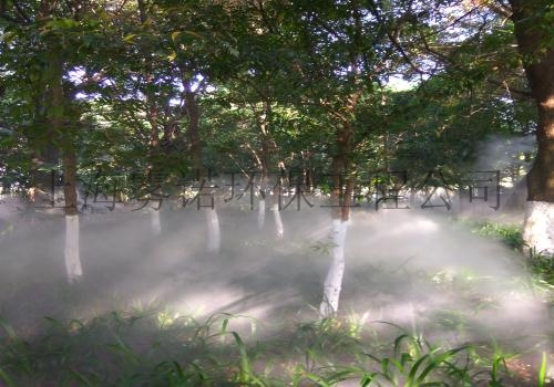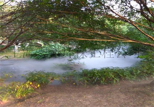 人造雾是将市政供水经过严格过滤、灭菌、消毒加加后,通过特制的喷嘴,以5-10微米左右的小水颗粒喷射而成,水颗粒在空中漂浮,形成若云若雾的自然雾景观。
