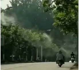 灯杆加设高压喷雾除霾,环保户外人造雾降温降尘,城市水雾风景线