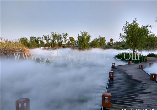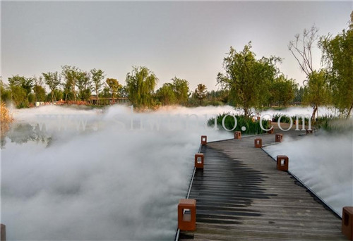 雾森系统有着极大的景观魅力,从自然界的烘托,自然韵味的营造,到建筑景观的特殊创意设计,雾森处处体现着人类文化与自然景观的融合。人们在其中嬉戏欢乐,犹如漫步在瑶池仙境,琼楼玉宇,满足了人类回归自然的愿望和对美妙环境的追求。若隐若现、朦朦胧胧的烟雾犹如在空中舞动的白色精灵,使各种园林景观平添了一份神秘优雅。